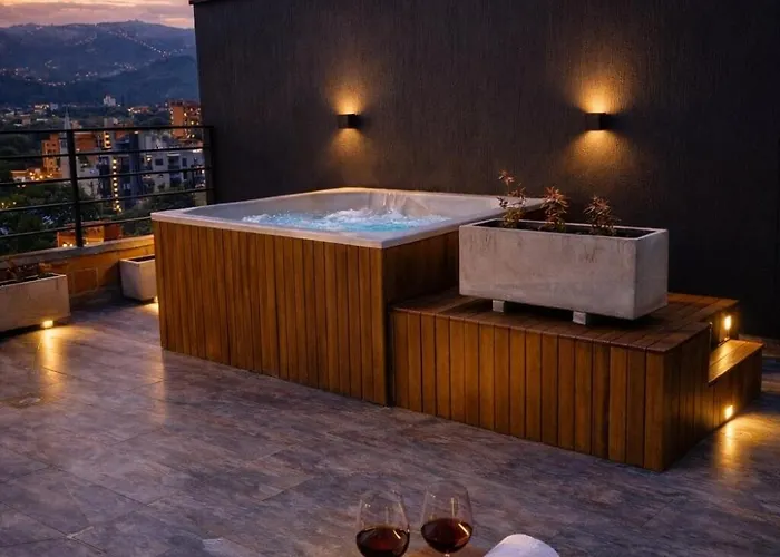 Located only a 9-minute walk from Super +, Luxury Duplex With Private Hot Tub In Old Town Apartment Medellin is 3.1 km from a top family-friendly place like the ecological park "Santa Fe Zoo".